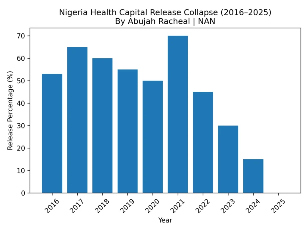 An analysis of federal budget data from 2016 to 2025 shows that in 2016, 53 per cent of the N28.7 billion appropriated for health capital was released.