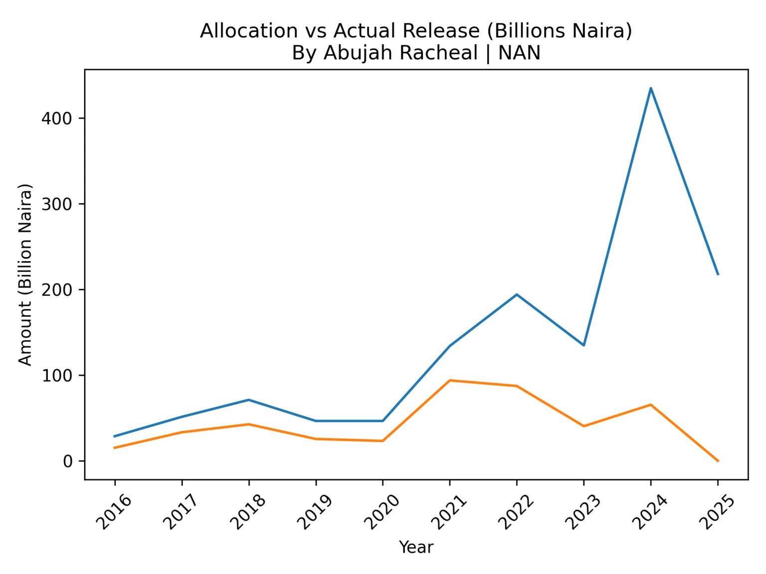 In 2023, it fell further to 30 per cent, and in 2024, only 15.06 per cent of the original ₦434.8 billion allocation was released.